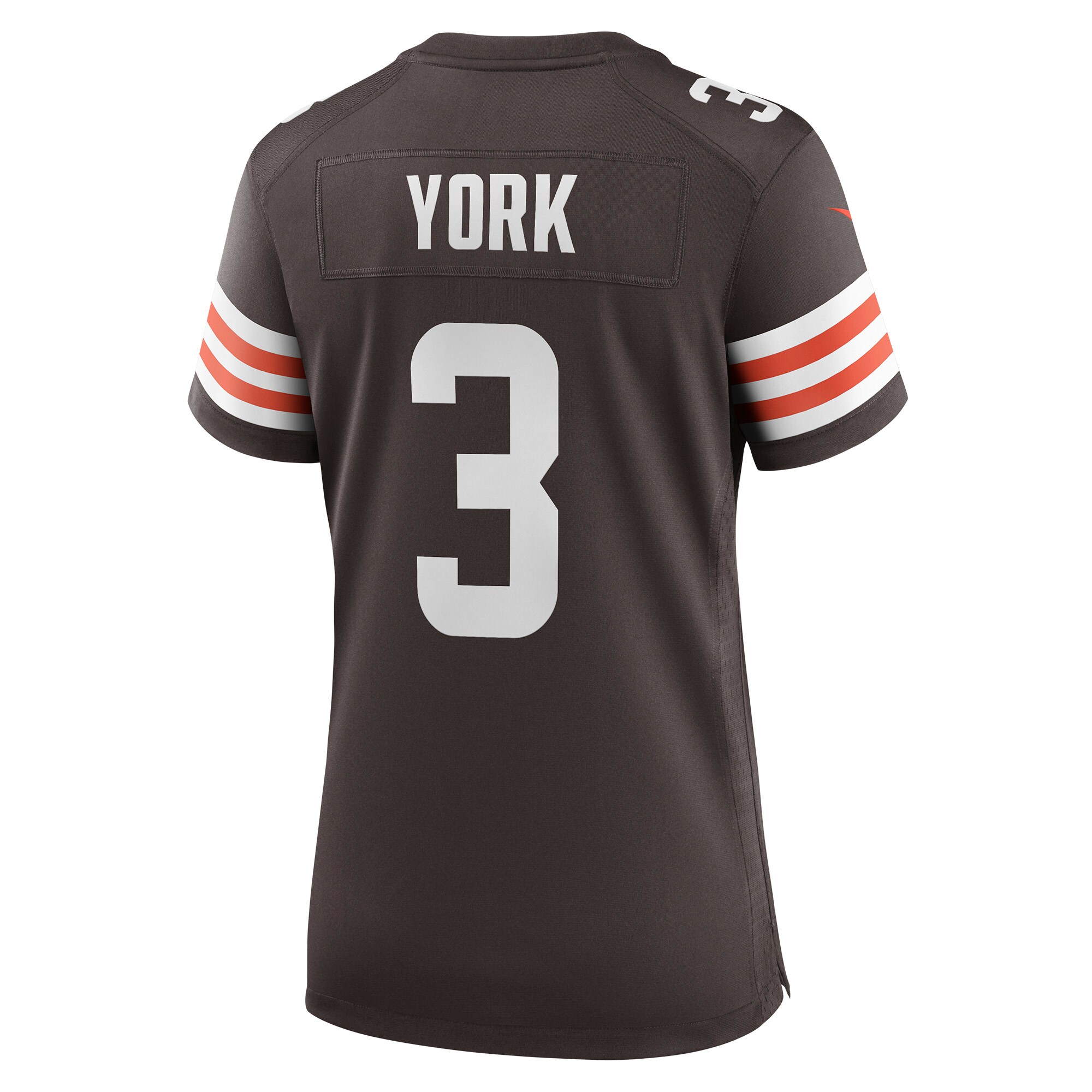 Rep the on-field look of your favorite Cleveland Browns player with this Cade York Game jersey from Nike. Its heat-sealed name, numbers and team details provide a kickoff-ready aesthetic while also offering a comfortable, lightweight feel. Designed for everyday movement, this jersey has a versatile tailored fit and features mesh side panels for added ventilation as you celebrate every big play by the Cleveland Browns this season.