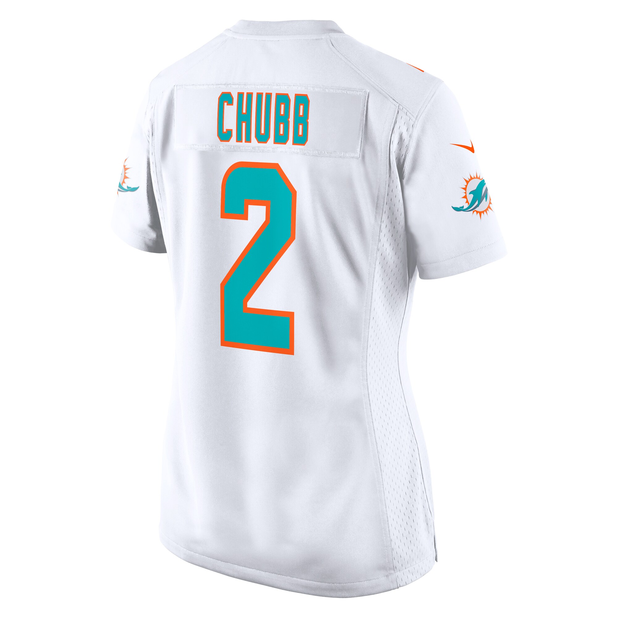 Rep the on-field look of your favorite Miami Dolphins player with this Bradley Chubb Game jersey from Nike. Its heat-sealed name, numbers and team details provide a kickoff-ready aesthetic while also offering a comfortable, lightweight feel. Designed for everyday movement, this jersey has a versatile tailored fit and features mesh side panels for added ventilation as you celebrate every big play by the Miami Dolphins this season.