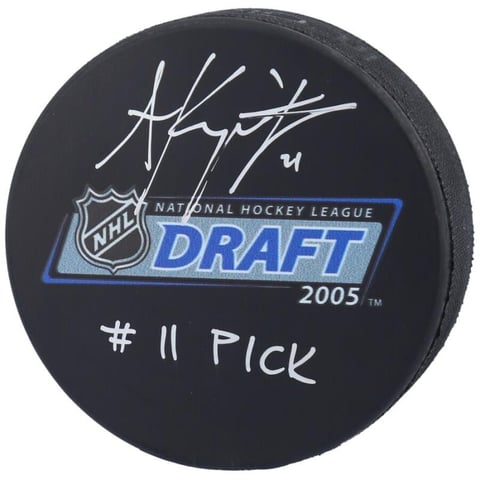Autographed Los Angeles Kings Anze Kopitar 2005 Draft Logo Hockey Puck with "#11 Pick" Inscription