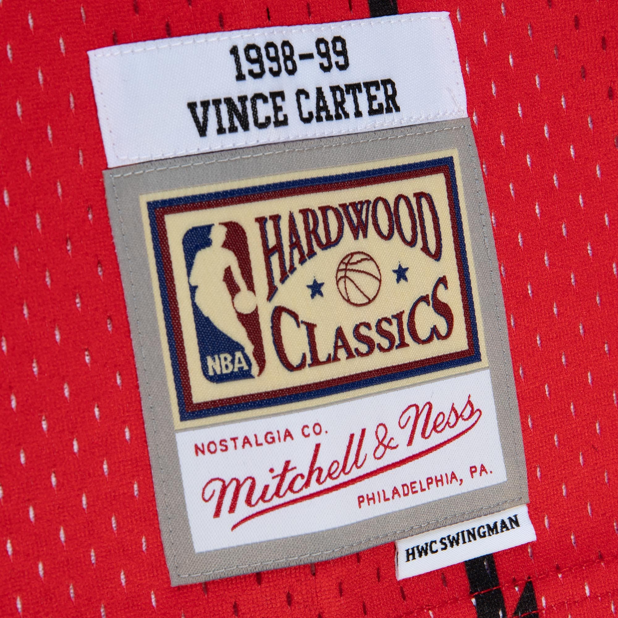 Create an epic Toronto Raptors game day look by grabbing this Vince Carter 1998/99 Hardwood Classics Fadeaway Swingman Player Jersey by Mitchell & Ness. Featuring mesh fabric and side slits at the hem, this jersey lets you look and feel like the real deal. Complete with tackle-twill Toronto Raptors graphics, this gear will get you pumped to cheer on your favorite player at the next big game.